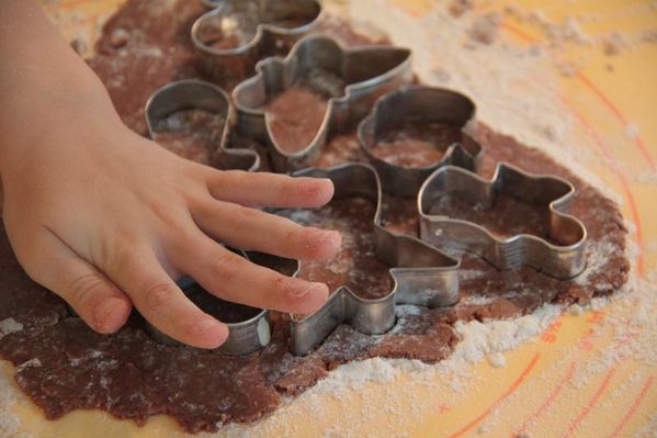 - Découper des formes à l’aide d’emporte-pièces. Les disposer sur une plaque allant au four préalablement recouverte de papier sulfurisé ou d’un tapis de cuisson.